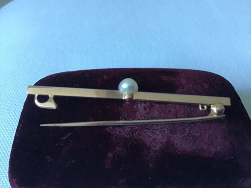 Vintage 15 Ct Rose Gold Cultured Pearl Bar Brooch Boxed