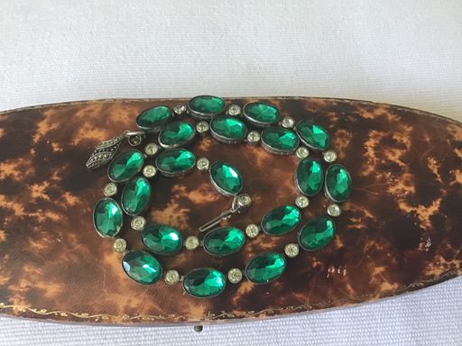 Vintage Silver Emerald &Diamond Paste Rivière Necklace