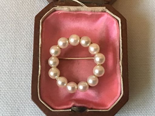 Vintage 9 Ct Gold Cultured Pearl Circular Brooch Boxed