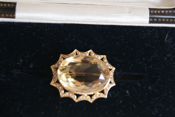 Fine Antique Gold Large Citrine Gemstone & Pearl Brooch