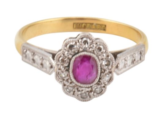 Fine Vintage Art Deco Gold& Platinum Ruby And Diamond Ring