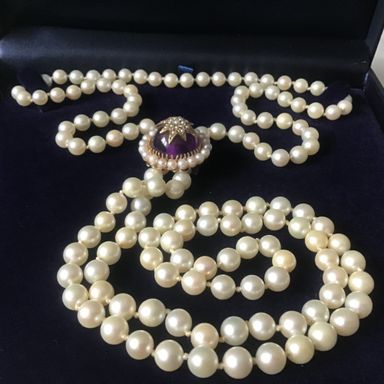 Fine Vintage Cultured Pearl Necklace With 9 Ct Gold Amethyst & Seed Pearl Enhancer Clip