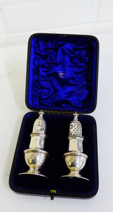 Cased Pair Of H/M Antique Silver Sugar Sifters